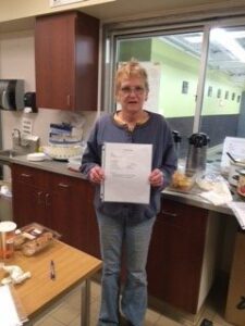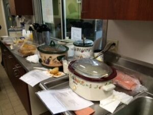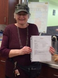 The staff was challenged, in each kitchen, to produce a soup that would appeal to our senior population and that doesn’t already exist in our recipe file. The ingredients had to be available on our order guide through our prime vendor, and the recipe could be quantified to use in our kitchen and be included in our recipe file. With the upcoming meeting, the Head Cook from each kitchen would bring their selected prepared soup for this event.